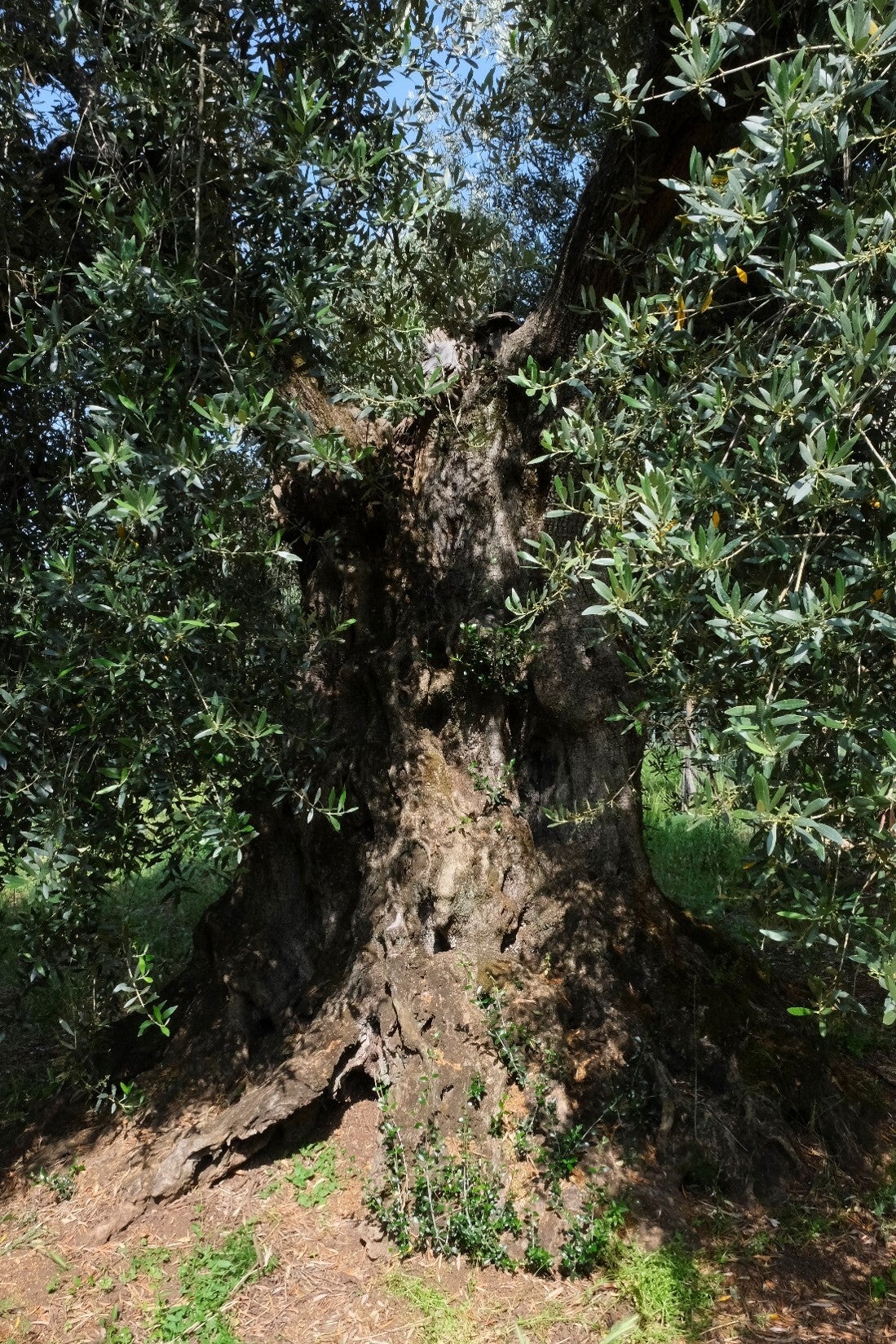 Le nervature profonde e le irregolarità del fusto testimoniano una crescita lenta e resiliente. Ogni segno inciso nel legno è traccia di stagioni trascorse e di interventi agricoli che hanno accompagnato l’albero nel corso delle generazioni.